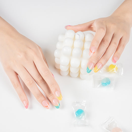 Rainbow French Tip Gel Nail Sticker Kit - DIY Semicured Nails